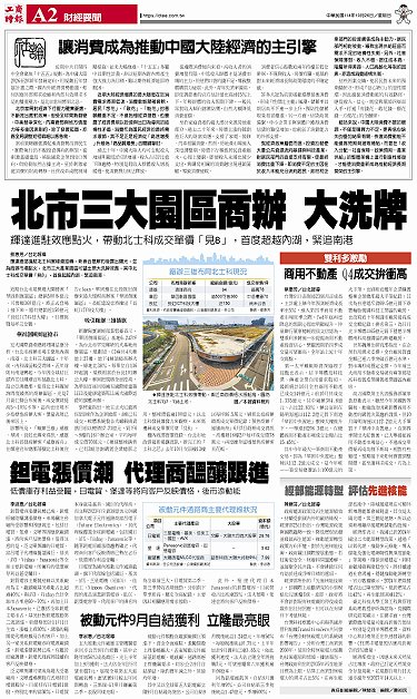 • 被動元件9月自結獲利 立隆最亮眼 經部能源轉型 評估先進核能 雙利多激勵 商用不動產 Q4成交拚衝高 讓消費成為推動中國大陸經濟的主引擎 鉭電漲價潮 代理商醞釀跟進 北市三大園區商辦 大洗牌
