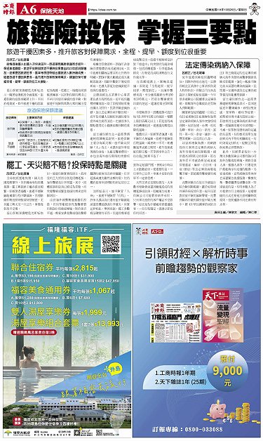 • 罷工、天災賠不賠?旅遊險投保時點是關鍵 法定傳染病納入旅遊險保障 旅遊險投保 掌握三要點
