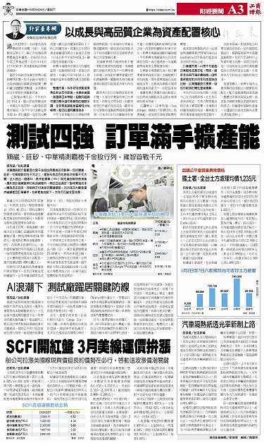 測試四強 訂單滿手擴產能