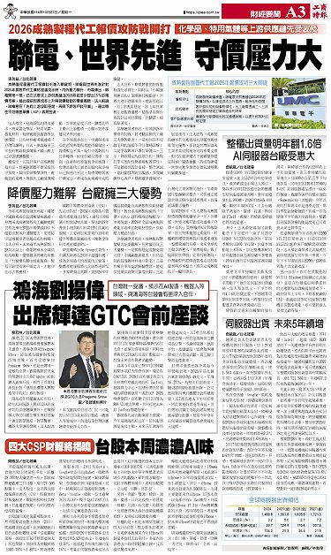 2026成熟製程代工報價攻防戰開打 聯電、世界先進守價壓力大
