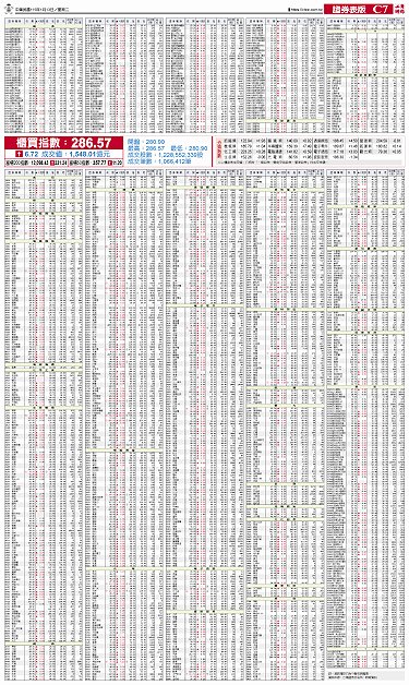 • 集中市場行情表