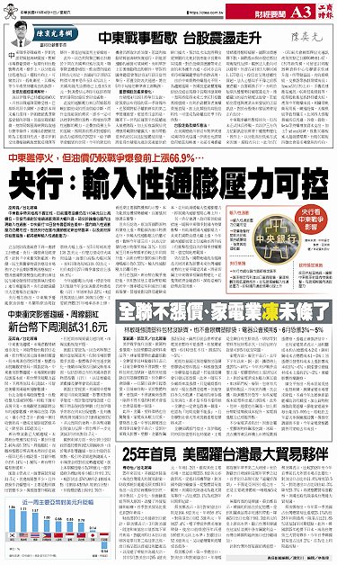 中東雖停火,但油價仍較戰爭爆發前上漲66.9%…央行:輸入性通膨壓力可控