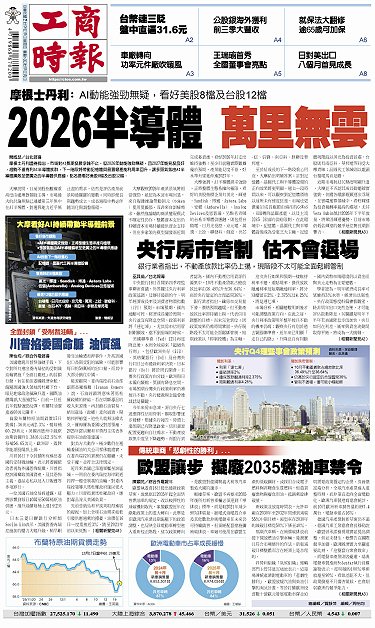 • 全面封鎖「受制裁油輪」...川普掐委國命脈 油價飆 歐盟讓步 擬廢2035燃油車禁令 央行房市管制 估不會退場 摩根士丹利:2026半導體 萬里無雲