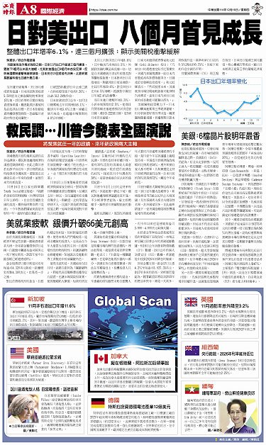 • 美就業疲軟 銀價升破66美元創高 美銀:6檔晶片股明年最香 救民調…川普今發表全國演說 日對美出口 八個月首見成長 Global Scan