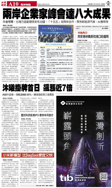 • 壁仞科技赴港IPO 最快本月發行 小米新模型 比DeepSeek便宜又快 中美角力 貝萊德併購長和港口陷僵局 沐曦掛牌首日 飆漲近7倍 兩岸企業家峰會達八大成果
