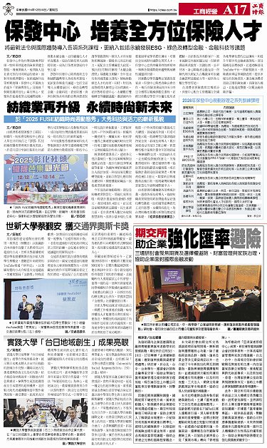• 實踐大學「台日地域創生」成果亮眼 世新大學蔡覲安 獲交通界奧斯卡獎 紡織業再升級 永續時尚新未來 保發中心 培養全方位保險人才