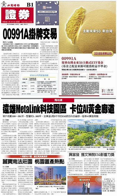• 興富發 獲文策院ESG影響力獎 麗寶南法莊園 桃園置產熱點 00991A掛牌交易 遠雄MetaLink科技園區 卡位AI黃金廊道