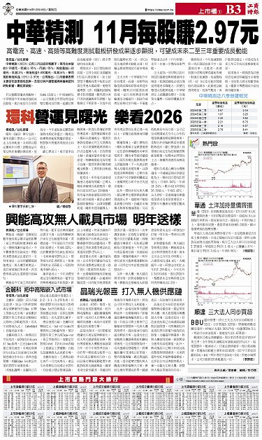 • 金麗科 拓中高階嵌入式市場 順達 三大法人同步買超 華通 土洋加持量價齊揚 晶瑞光報喜 打入無人機供應鏈 興能高攻無人載具市場 明年送樣 上市櫃熱門股大排行 環科營運見曙光 樂看2026 中華精測 11月每股賺2.97元
