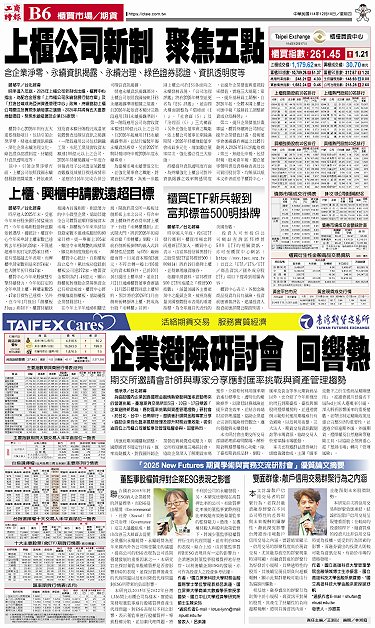 • 櫃買ETF新兵報到 富邦標普500明掛牌 雙面群像:散戶信用交易群聚行為之內涵 上櫃、興櫃申請數遠超目標 櫃買商品行情表 期貨商品行情表 企業避險研討會 回響熱 上櫃公司新制 聚焦五點 董監事股權質押對企業ESG表現之影響