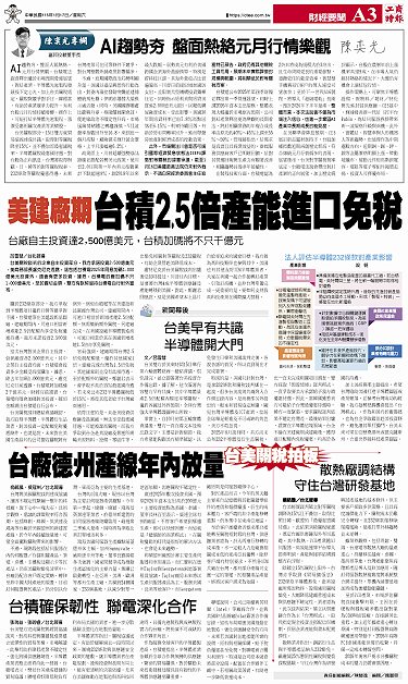 台美關稅拍板|台積確保韌性 聯電深化合作