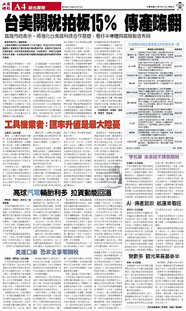 台灣模式關鍵Q&A》會計師看台灣模式提醒:在美產業聚落成形 後續關注美最終稅率