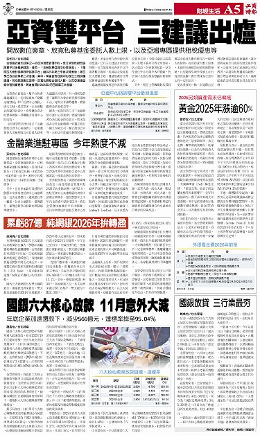 • 林志吉退休 尚光琪接金管會主秘 降息發酵 2026聯貸利率可能下修 金融股指數連三年收紅! 2026金融業獲利仍可期 壽險元月宣告利率按兵不動 迎接2026新年祝福 國泰金跨年倒數光雕 點亮台北101 2025聯貸爭霸 公股銀包前五
