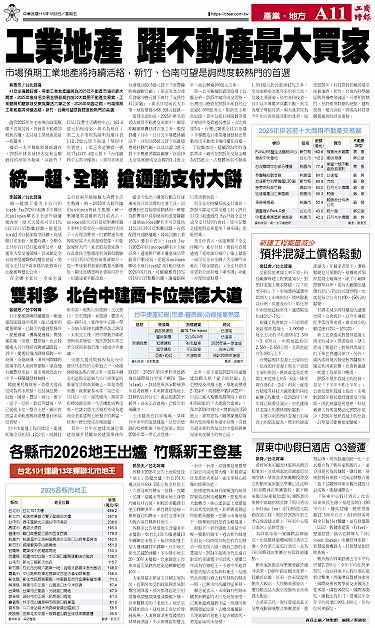• 智崴橋科廠 成高階產品生產重鎮 印尼鎳礦減產、大陸限制出口 不銹鋼廠1月盤價開飆 房市遞延性買盤 2025歲末出籠 看準每年規模300億元寵物商機 李方艾美開放毛孩入住 台中北區危老更新夯 建商卡位 亞灣高軟園區 掀商辦開發熱潮 iRent攜手USPACE 上架特斯拉
