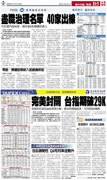 • IPO市場 AI產業扮要角 股王爭霸 信驊強勢勝出 2026強檔大戲:主動式ETF規模狂飆 AI浪潮再淘千金 光通訊成「嬌」點 台股擺尾 名師高喊元月31K 2025年ETF總體檢 貴金屬、海外股績效稱王