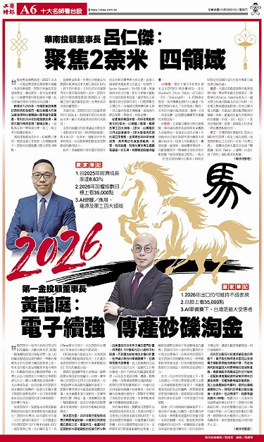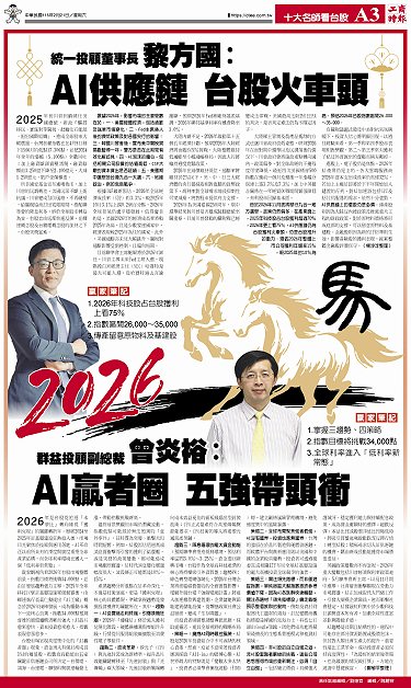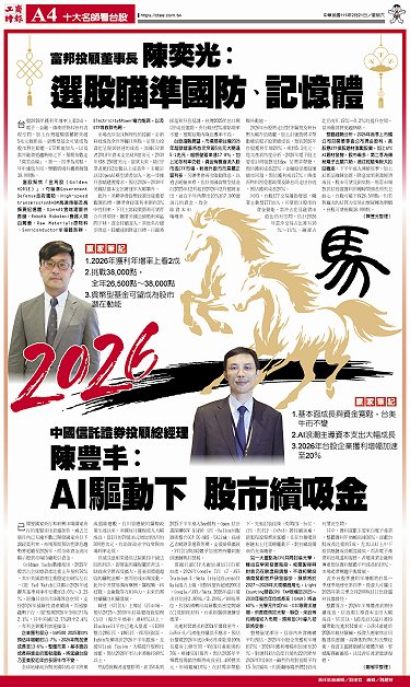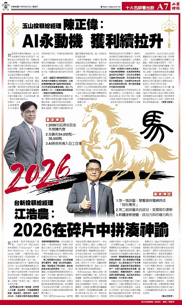 • 玉山投顧總經理陳正偉:AI永動機 獲利續拉升 台新投顧總經理江浩農:2026在碎片中拼湊神諭
