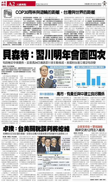 • 川普:關稅收入將很快飆升 專家:台韓晶片共同戰線難成 合作多為象徵 抗美晶片關稅 韓有意拉攏台 台灣如何兼顧會計準則國際接軌與保險產業發展 日相發言後 習川熱線台灣問題