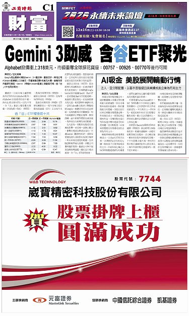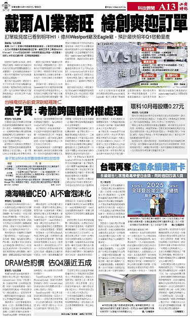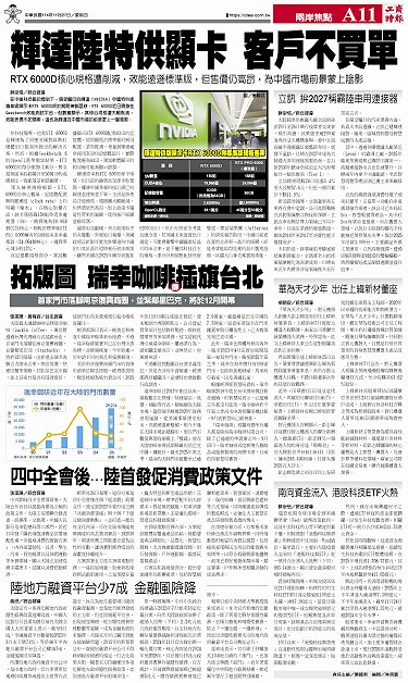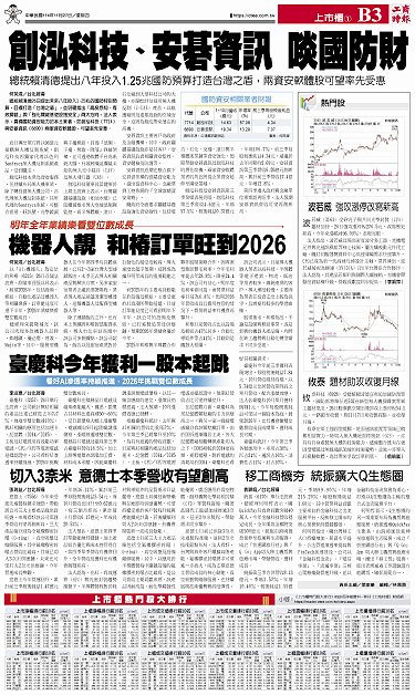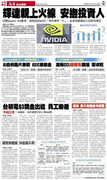 • 抽到鴻勁要賣嗎? 外資目標價喊到4,000元 T17、T18正式返回 北市:全力推進輝達簽約 AI狂潮 晶圓代工營收 雙位數增至2030年 威剛陳立白、宜鼎簡川勝齊示警:DRAM、NAND雙緊到明年H1 布局先進封裝測試火力全開 日月光中壢、楠梓再擴產 信驊:今年季季高 明年Q1更好
