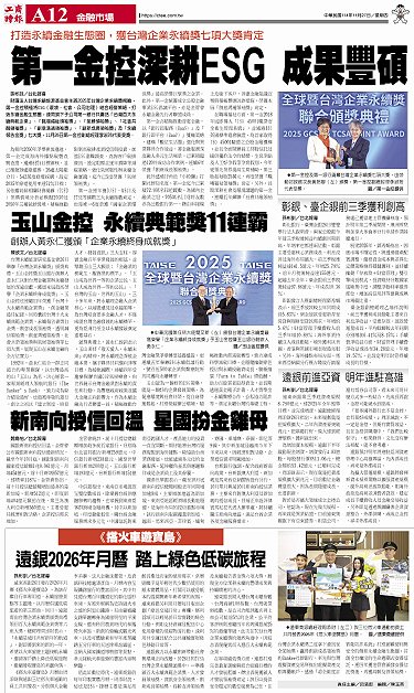 • 國際數據:電動車險風險驟增 公股銀:台灣模式金融協助 供應鏈解方 台新新光金旗下投信完成合併 資產飆 玉山銀行獲ESG for Culture影響力獎 產險:電動車保單損率仍可控 新台幣連十黑 11月貶近7角