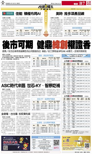 • 券商近期活動訊息專欄 AD1 AD2 東元 獲利成長可期 華邦電、威剛 本土投顧挺 題材加持 喬山、來億-KY權證聚光 熱門權證快報 鴻海 布局AI營運俏 PCB止穩 健鼎、華通再攻