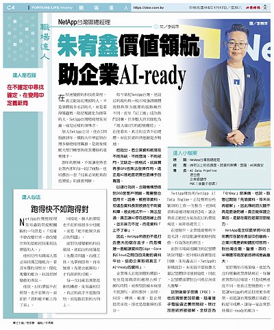 NetApp台灣區總經理 朱宥鑫價值領航 助企業AI-ready