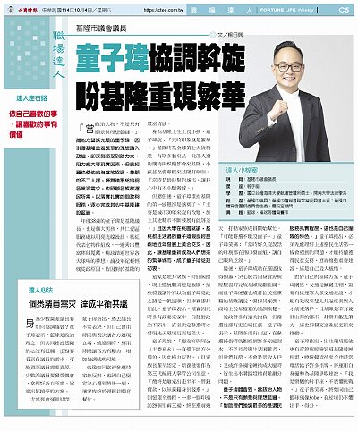 基隆市議會議長童子瑋 協調斡旋 盼基隆重現繁華