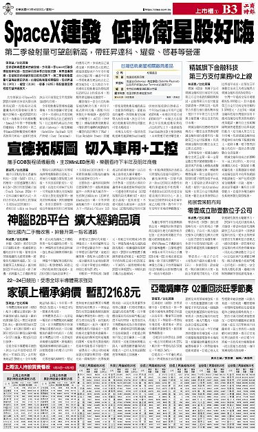 全球低軌衛星產業持續發燒,今年第一季SpaceX打破多項發射新紀錄,包括單月及單季的發射次數。業界普遍預期,在發射技術持續突破且愈見成熟下,第二季發射衛星量可望再創歷史新高,台灣低軌衛星相關個股,包括昇達科(3491)、耀登(3138)、啟碁(6285)等股營運受惠程度可望持續放大。