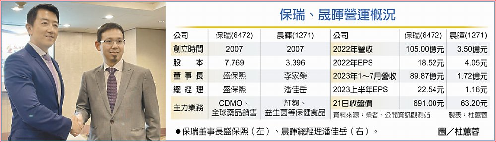 保瑞、晟暉營運概況 ●保瑞董事長盛保熙(左)、晨暉總經理潘佳岳(右)。圖/杜蕙蓉
