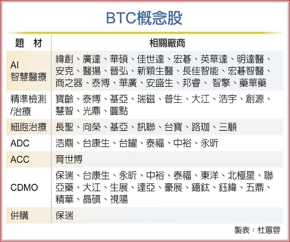 已成為生技產業政策方向球的BTC,今年邀請美國韌力(National Resilience)創辦人、育世博(6976)董事長楊育民、台灣微軟公共事業群總經理陳守正、台杉生技基金合夥人沈志隆、保瑞(6472)董事長盛保熙、長佳智能(6841)董事長陳明豐等產業大咖演講,也讓旗下公司隨著議題的探討受到關注。