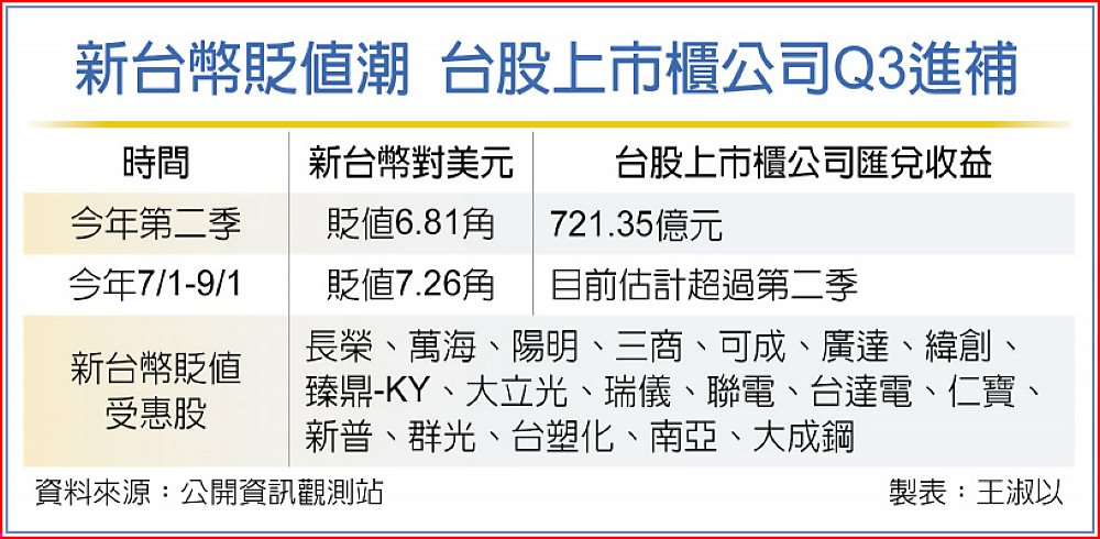 新台幣貶值潮 台股上市櫃公司Q3進補