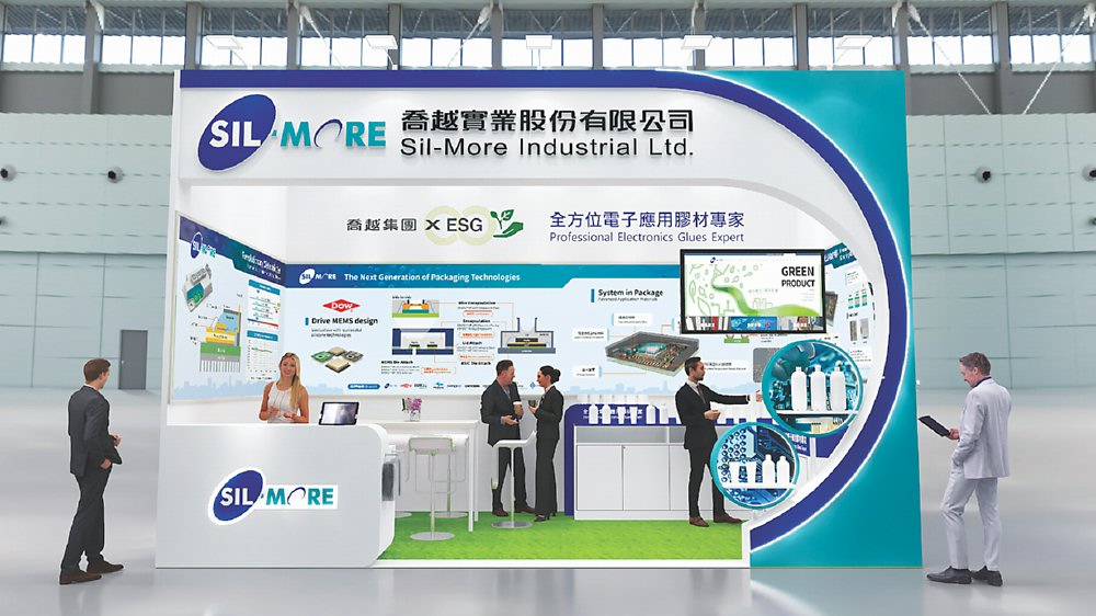 ●喬越集團2023 SEMICON Taiwan國際半導體展(1館1樓,攤位K2581),展出「次世代封裝技術材料」;圖為展場3D示意圖。圖/喬越集團提供