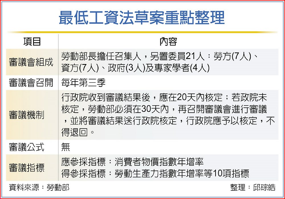 最低工資法草案重點整理