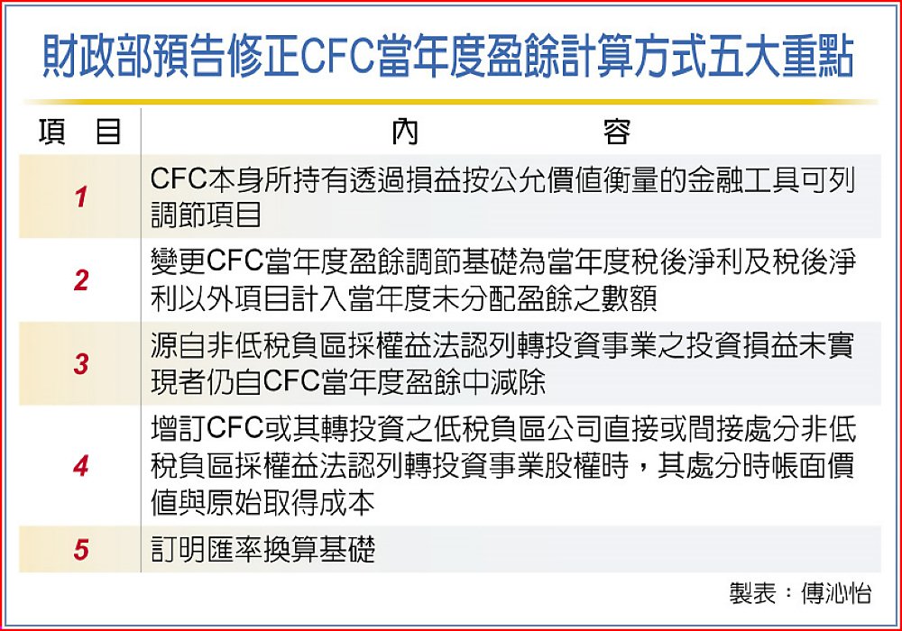 財政部預告修正CFC當年度盈餘計算方式五大重點