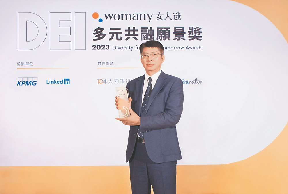 ●康林國際集團榮獲2023年度最佳DEI企業獎,為人力仲介業唯一獲獎企業,由人資事業群總經理曾潮雄代表接受表揚。圖/康林國際集團提供