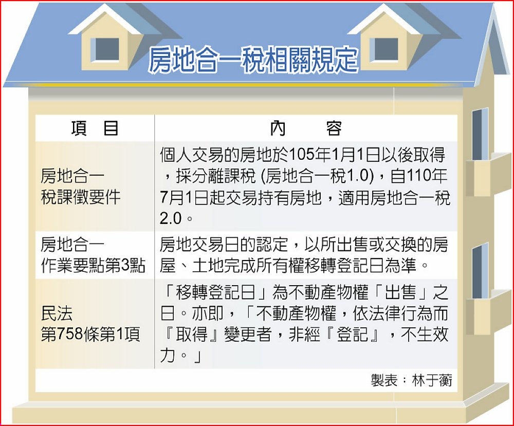高雄高等行政法院審理後認為,110年7月1日施行的所得稅法第14條之4,早在110年4月9日就修正通過,並明定110年7月1日施行,房地合一稅屬於移轉稅,並非持有稅,所得稅法第14條之4修正時,已考量到新修正法律對納稅義務人所可能造成的影響,期間多方管道都有宣導資料跟報導,楊男如果想適用修正前20%的稅率,應於新制施行前完成所有權移轉登記。