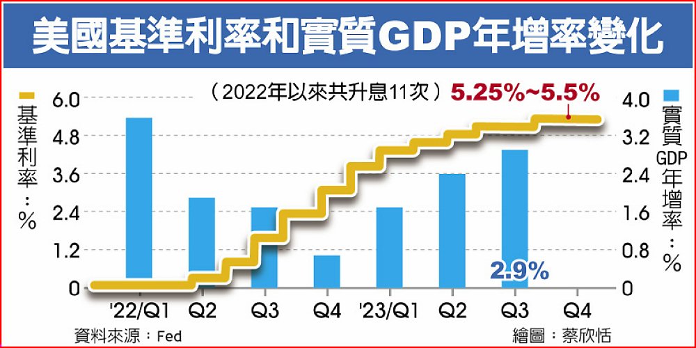 去年以來聯準會共升息11次,至今年7月為止基準利率已達5.25%至5.50%,9月聯準會宣布利率不變,但主席鮑爾暗示利率還不夠高,也維持得不夠久。