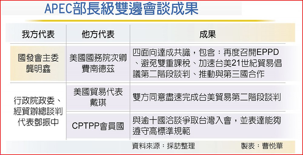 APEC部長級雙邊會談成果