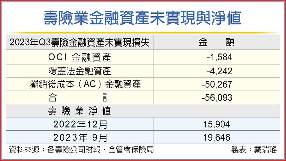 第三季因美國聯準會(Fed)貨幣政策「higher for longer」預期發酵,美債利率上揚,債券價格大跌,第三季底壽險業含攤銷後成本項下(AC)的金融資產未實現損失,擴大到5.6兆元,震撼市場。壽險公會指出,實際影響淨值的只有OCI及覆蓋法下的未實現損失5,750億元,且前九月壽險稅前純益為1,747億元,保持穩健獲利。