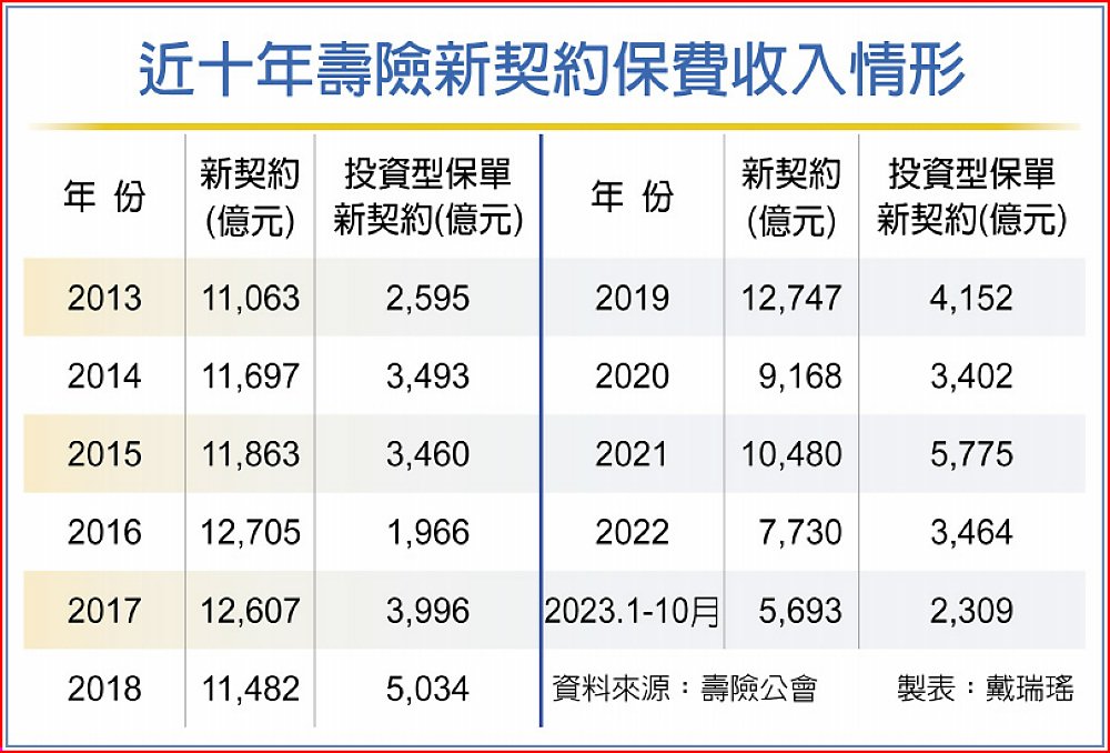 今年各家壽險新契約保費增減情況不一,國壽前十月新約保費約1,198億元,年增92億元或8%,是大型公司唯一成長者,動力主要來自投資型保單;富邦人壽前十月810億元,年減141億元或15%。