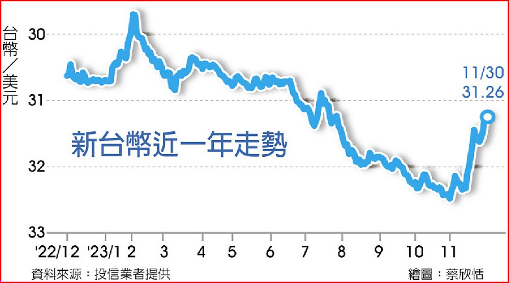 果然11月新台幣又如同去年11月急升,直接升破32元,壽險業雖有準備,但今年因台美利差大,NDF及CS避險成本都4%以上,避險費用昂貴,不避險匯兌損失又立即侵蝕獲利,所幸11月股市表現不錯,估計壽險公司會趁機實現股票資本利得,支應外匯成本;另外就是11月韓元升值比新台幣多,人民幣亦有大幅升值,一籃子貨幣避險恐也有一定功效。