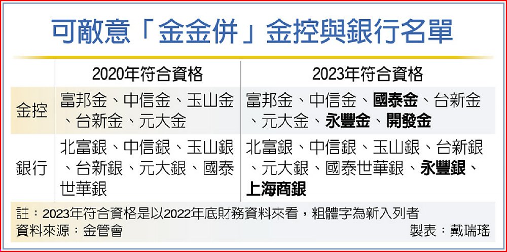 可敵意「金金併」金控與銀行名單