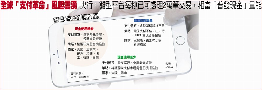 全球「支付革命」風起雲湧 央行:雛型平台每秒已可處理2萬筆交易,相當「普發現金」量能