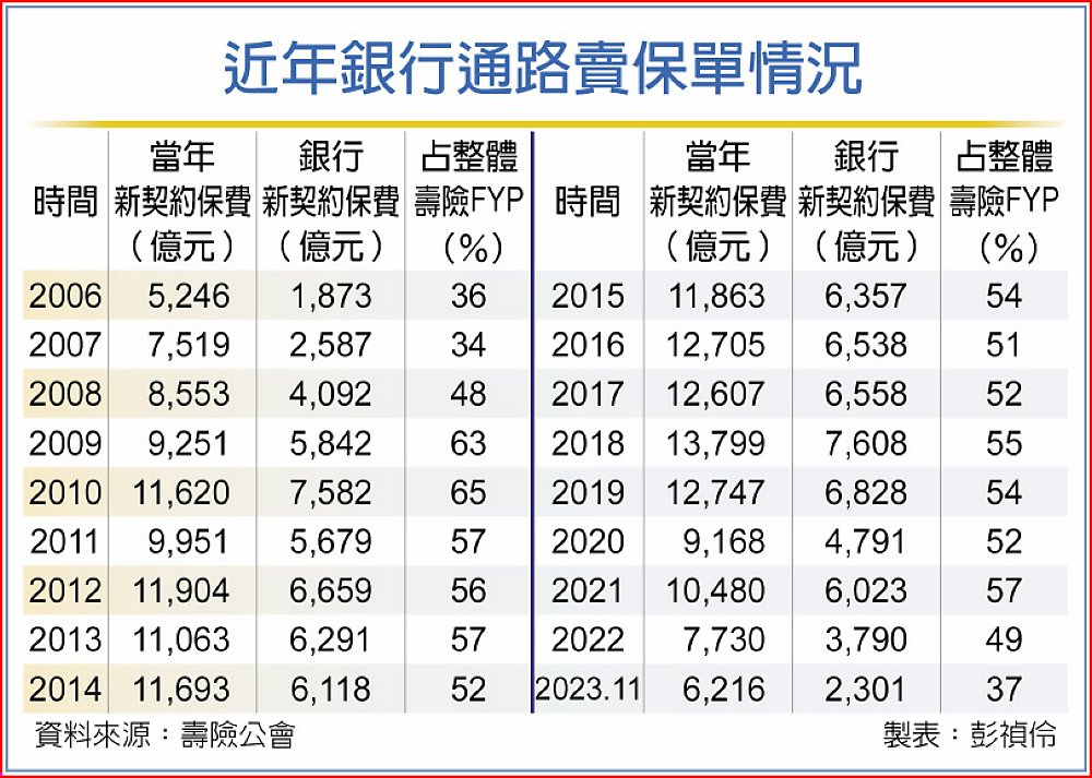 壽險公司下半年有拉升利變保單宣告利率,亦有推出預期分紅率高的分紅保單,希望「搶一波保費」,據壽險公會統計,11月銀行通路貢獻新契約保費約222億元,較去年同期增加51億多元,但與極盛時期銀行每月貢獻500~800億元相比,現在銀行通路業績是腰斬再腰斬。