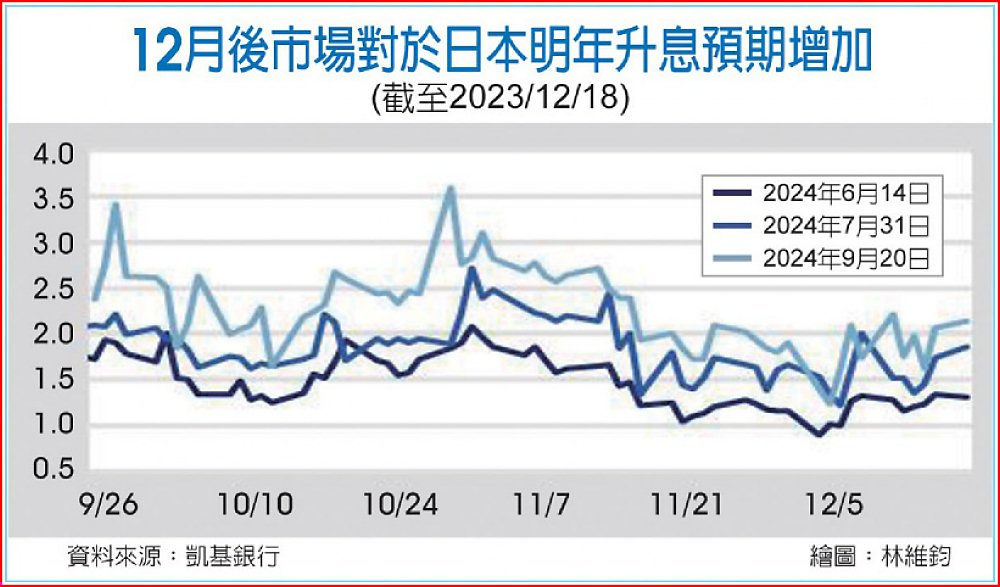 美國升息造成的利差影響是日圓近兩年快速貶值的主因,曾在今年11月逼近33年新低,達152日圓兌1美元的重大關卡。然而,12月日銀總裁植田和男在出席參議院財政金融委員會時表示:「貨幣政策將變得更具有挑戰性」,讓市場預測日銀終將結束長達八年的負利率時代。