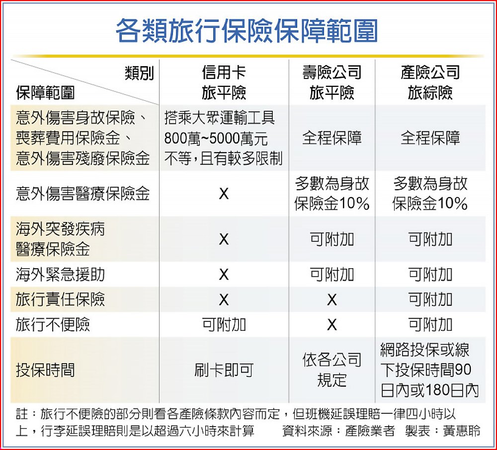 產險業者強調,由於產險業旅行不便險都用相同條款,產險旅行不便險「旅程取消保險」的承保範圍都是相同的。