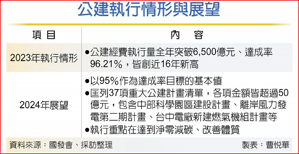 國發會22日舉行委員會議,就去年公共建設計畫執行情形提出報告。國發會副主委高仙桂會後表示,去年公建經費執行量全年突破6,500億元,為近16年最高。雖然各機關提升公共建設執行量能時,須面對營建物料價格波動及勞動力供需挑戰,但整體公建計畫經費達成率仍創下96.21%成績,順利達標。