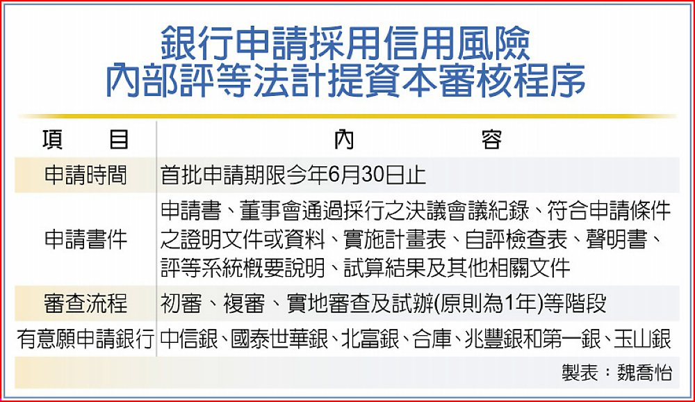 銀行申請採用信用風險 內部評等法計提資本審核程序