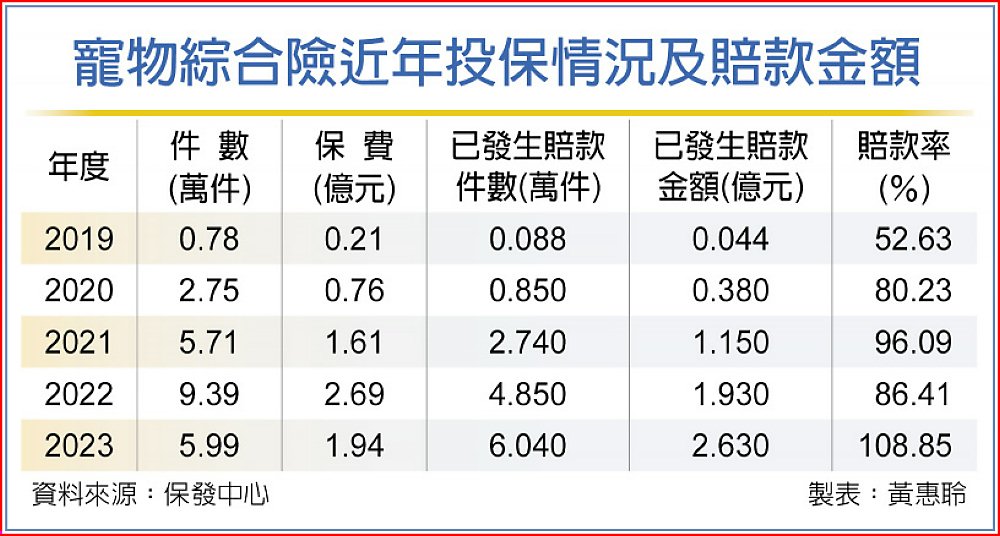富邦產指出,該寵物險有三家不同方案,醫療補償比例高達80%,即自負額為20%,另手術及住院醫療最高6萬元保障,首次投保2個月至未滿8歲,續保年齡可至未滿15歲。