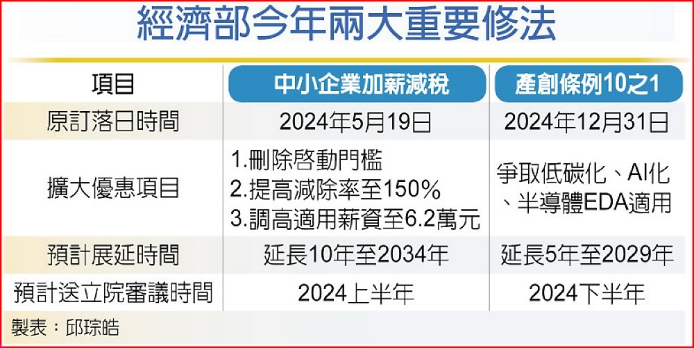 經濟部將推動「中小企業加薪抵減」、「產創條例10之1」兩大法案屆期修法。圖/本報資料照片