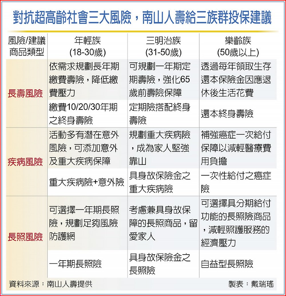 對抗超高齡社會三大風險,南山人壽給三族群投保建議