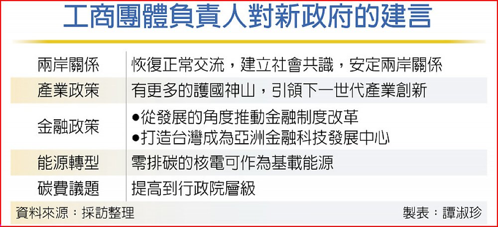 苗豐強、林伯豐則直接點出「能源轉型」為現階段產業界最大痛點。苗豐強以賴清德提出的「啟動第二次能源轉型」的政見為據指出,我國再生能源推動進度不如預期,也與政府規劃的2025目標有不小差距,「產業界對低碳能源之穩定供應有所疑慮。」